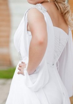 +7 (916) 283-82-80 Подвергалось перешиву в спинке, укорачивался низ и пришита петелька с крючком к шлейфу, чтобы не носить его в руках.