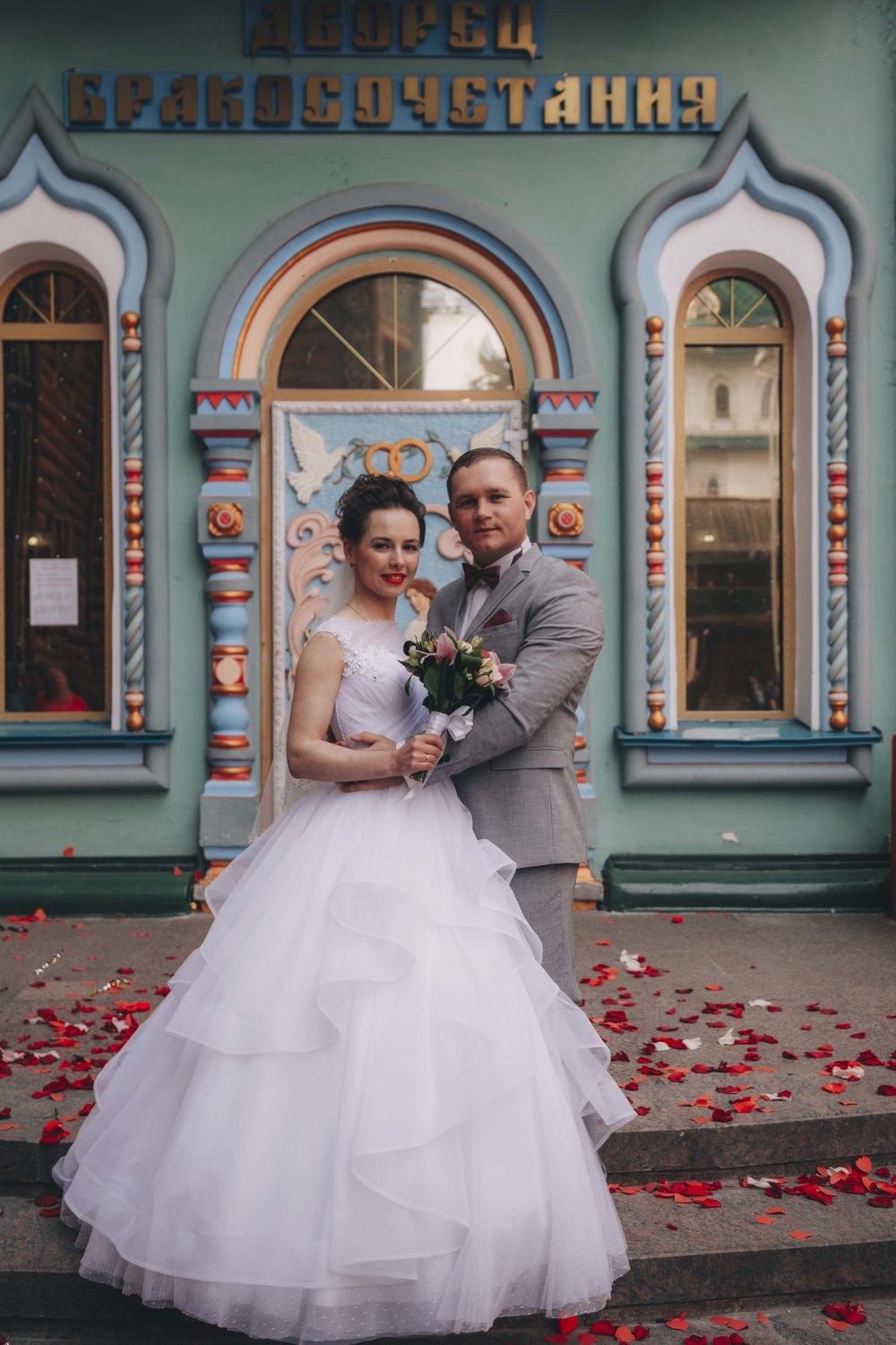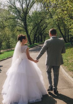 Имеет корсет со шнуровкой, за счет которого размер платья может регулироваться. Надевала один раз на свадьбу. Платье после химчистки. Подъюбник с кольцами для платья, перчатки и фату отдам в подарок. При необходимости вышлю дополнительные фото.