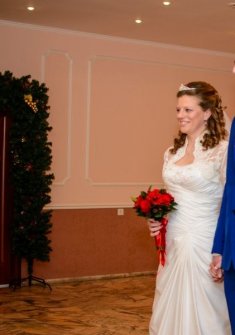 Зимой самые красивые свадьбы! Очень круто смотрятся красные цветы в букете)Чтоб не испачкалась платье в слякоть выходя из машины, оберните низ юбки сзади в пакет и выйдете королевой