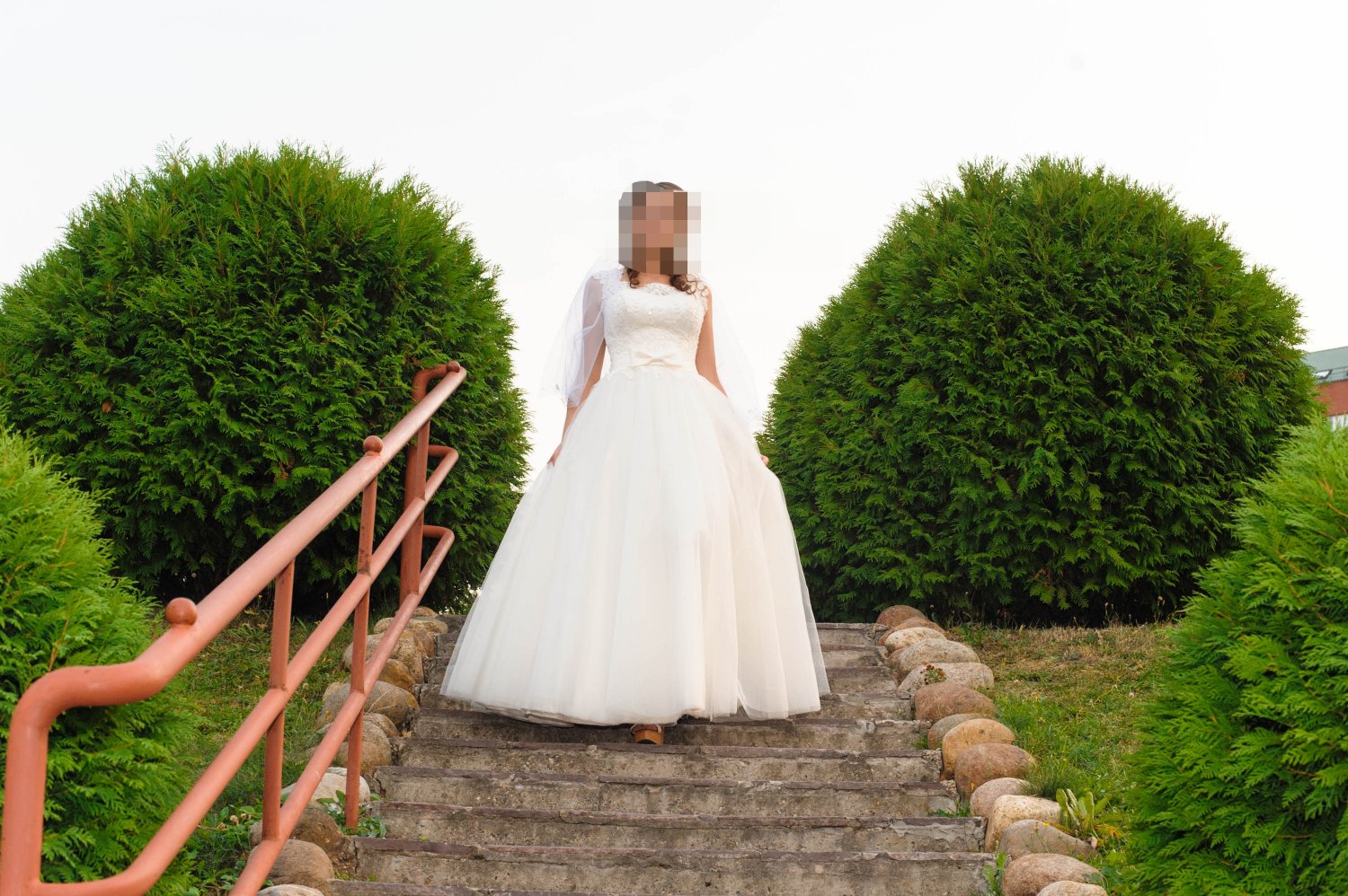 Свадебное платье на рост 164 см. Покупала в свадебном салоне. Достаточно лёгкое по весу. Очень удобное