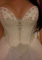 Платье Ruby от Оксаны Мухи. Корсетное платье с шнуровкой и застежкой-молнией на спине. Основные материалы: атлас матовый фатин. Лиф платья покрыт вышивкой высококлассной ручной работы, расшит кристаллами Swarovski и Preciosa, бисером, стеклярусом, жемчугом и пайетками. Юбка пышная из английского фатина. Платье одевалось один раз, после химчистки.